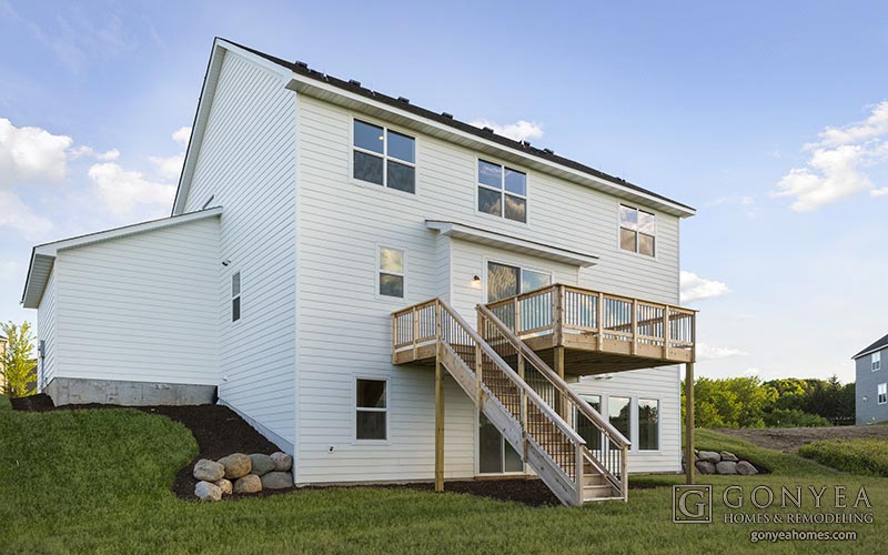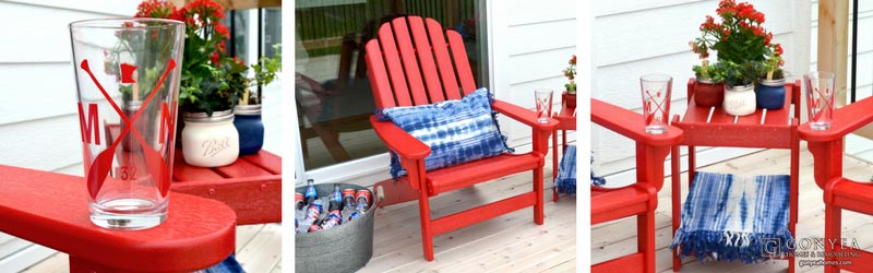 Through quality sliding doors right off the main level, this durable, custom-built cedar deck is essential to any home, making transitions from indoor to outdoor entertaining simple. The spacious design allows versatility for outdoor furniture and grilling. The upcoming holiday gave us an excuse to adorn the deck with red, white, and blue. The addition of Adirondack chairs, comfy pillows, and attractive plants illustrated how flexible this space could be throughout the changing holidays and seasons.