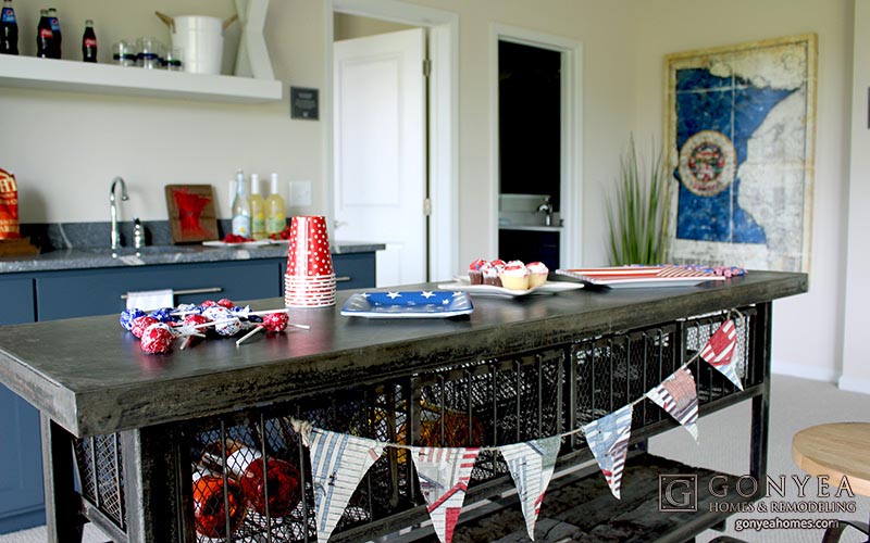 Welcome to Part 2 of our Fourth of July in a Custom Home series. If you are looking for a new home, or need some 4th of July decorating inspiration, this for sale Plymouth, MN model is the perfect place to start. With a quiet neighborhood, exceptional school district, quality design, and large entertaining spaces, you can have it all. By incorporating unique pieces from local businesses throughout the Twin Cities, the outdoor deck and lower-level bar became the perfect place to entertain guests and enjoy an evening full of festivities.