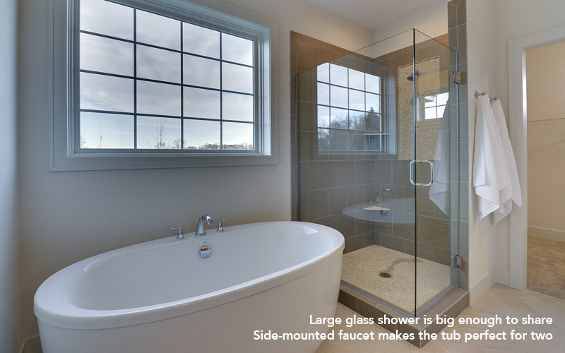 Take a closer look at this owner’s suite. Separated from the public spaces of the home, this private retreat has it all – beautiful views, a tub for two, and a walk-in closet. We invite you to visit our model homes for sale, or stop by an open house.