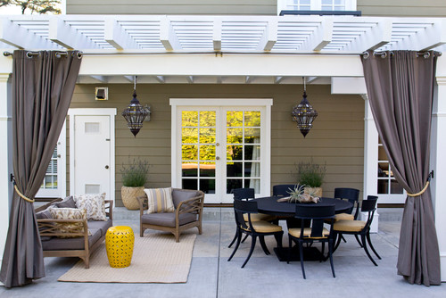 Many times when decorating an interior room, we start with a focal point and then add on. You decorate your room with different furnishings that complement each other, and then add beautiful textiles and accessories that pull the look together. Decorating an outdoor living space is no different. Think of your outdoor space as an extension of your home. By incorporating the same elements, like rugs, tables, pillows, and cushions, you can bring all the coziness of an indoor space out to your patio. Also, just like the inside of your home, you can create separate spaces throughout your outdoor living. This could include incorporating a dedicated area for outdoor dining right next to your outdoor living room. Make your outdoor living space as welcoming and inviting as your indoor spaces! Check out more of our favorites in our “Outdoor Living Spaces” HOUZZ Ideabook.
