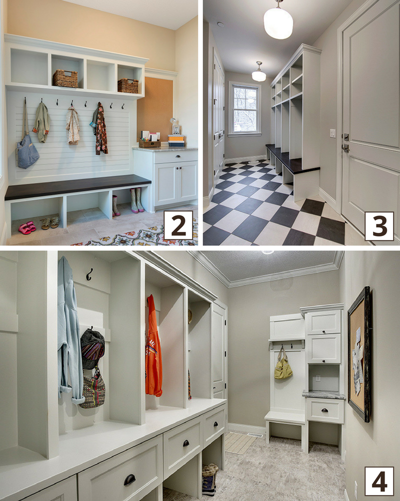 3. Spiced up with checkered flooring, this classic design adds fun and function to your beautiful home. Race to the garage and effortlessly grab items from the custom bench and number of cubbies.