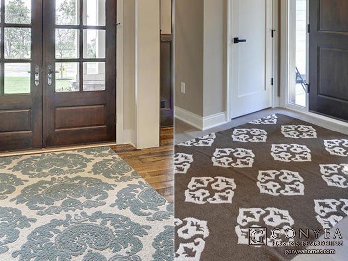 As one of the first things seen upon entering your home, your entryway rug is one of the most important design decisions you will make. A rug will add color, texture, warmth and softness to a hardwood or tile entryway. Plan for your rug to absorb moisture and earth from the outdoors by choosing durable fibers and a color palette that can camouflage a little dirt.