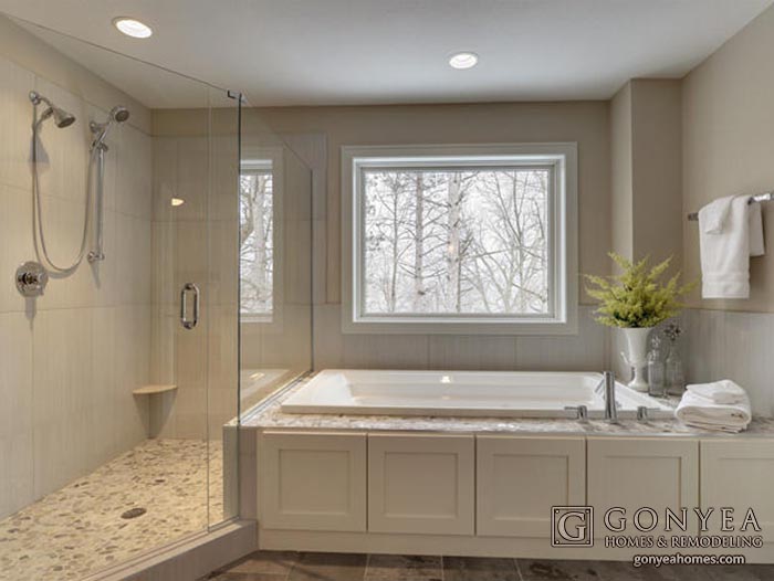 One of the trends we have recently had clients embrace is the “spa bathroom” because it satisfies our desire for peace and serenity. We crave place to get away from our hectic, modern lives, clear our minds, quiet our souls, and restore our bodies.