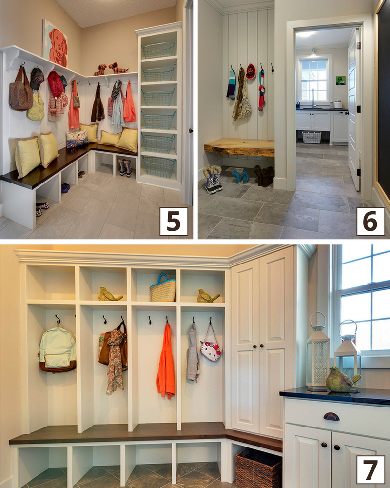 7. With 4 lockers and 8 hooks, everyone gets their own space in this mudroom. Built-in custom cabinets allow out-of-site stowing for extra storage.